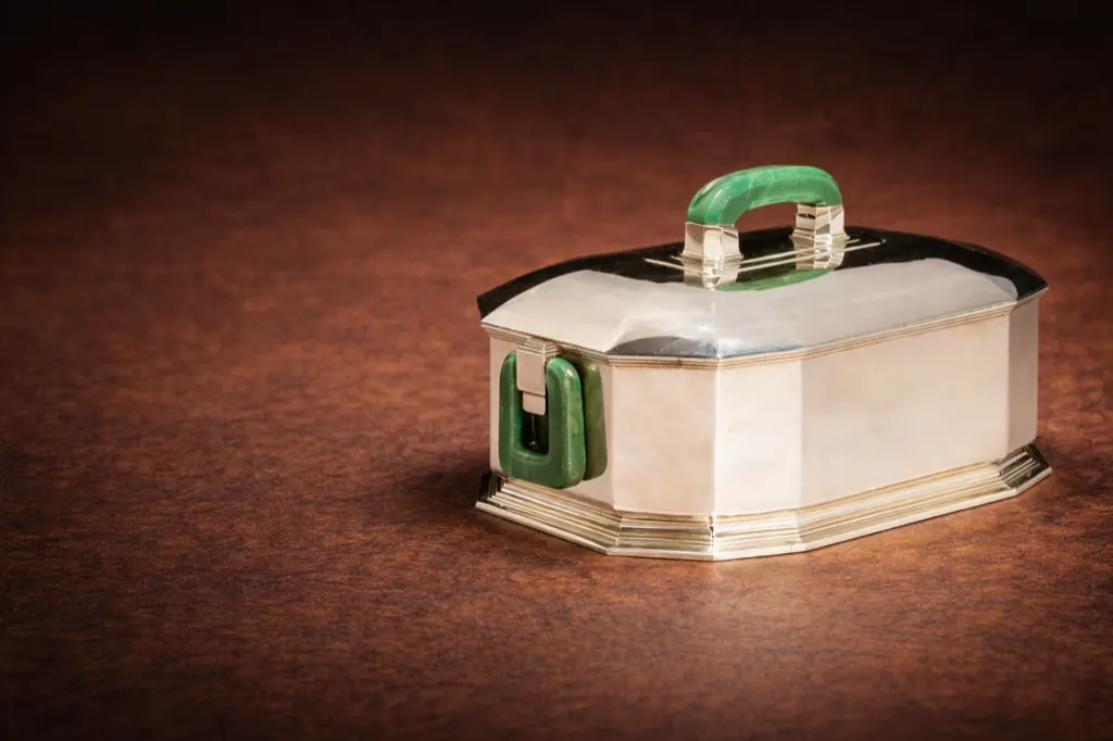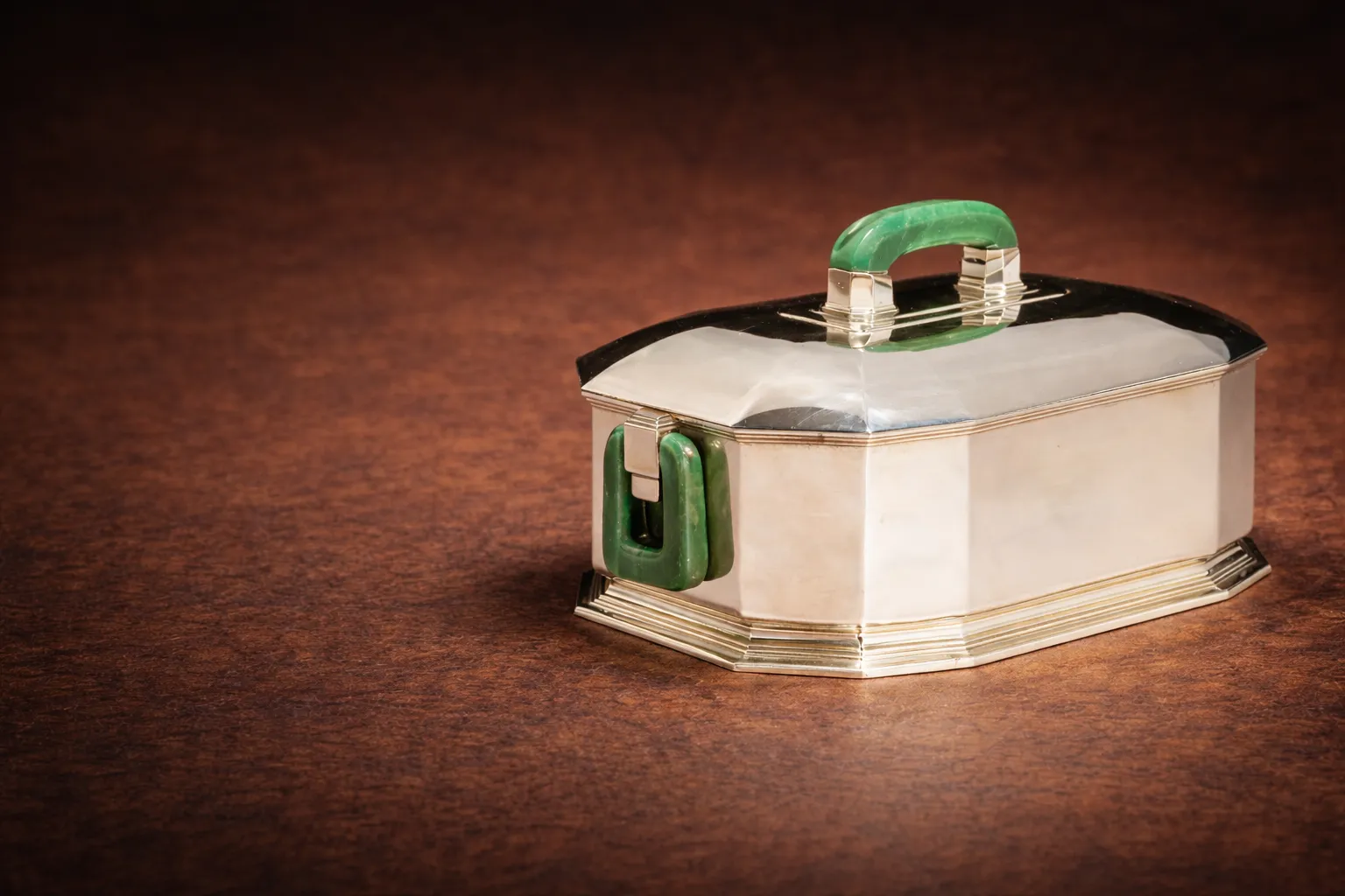 Jean Puiforcat a révolutionné l’orfèvrerie en introduisant des lignes géométriques pures, des formes architecturales et l’utilisation de matériaux nobles en combinaison (argent, ivoire, bois précieux, lapis-lazuli). Ses pièces originales des années 1920-1940 sont aujourd’hui des objets de collection dont la valeur dépasse largement celle du métal.